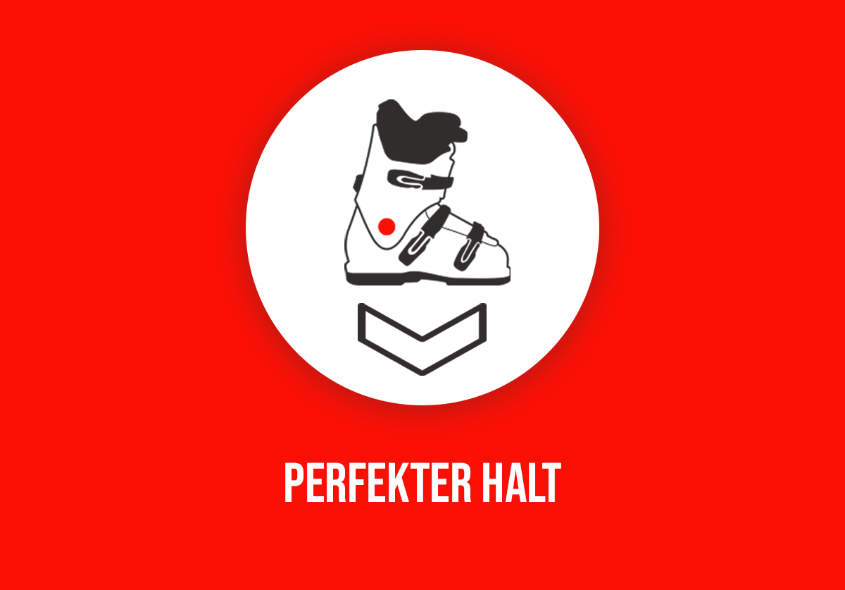 Stecken Sie nun den Ski mit dem Vorderbacken auf die Schuhspitze und drücken Sie den Ski hinter dem Fersenautomaten nach unten.